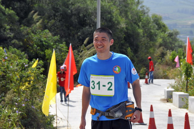 我們在出發(fā)處一直做著熱身,賽前不小心感冒的閩南向我們極力強(qiáng)調(diào)熱身的重要性,當(dāng)我們詢問他的身體狀況,叫他比賽途中不要太勉強(qiáng)時,他擦去額頭上的汗水,爽朗一笑:“我感覺都快好了!”