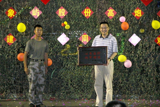 經(jīng)過一場緊張激烈的籃球友誼賽后,晚會正式開始。鄧啟東總經(jīng)理代表公司向三連贈送了慰問品,高炮三連指導(dǎo)員發(fā)表講話提出三連在象嶼股份的攜手同行中部隊(duì)現(xiàn)代化建設(shè)得到持續(xù)發(fā)展,同時(shí)感謝公司多年的支持并回贈“心系國防,擁軍模范”牌匾。象嶼股份黨總支副書記湯開宏同志回顧了雙方共建十五年的歷史并總結(jié)共建以來象嶼股份在高炮三連敢打敢拼精神的鼓舞、帶動下的不斷發(fā)展壯大,最后對共建關(guān)系提出美好希冀,期望雙方在繼續(xù)共建中不斷共同促進(jìn)。