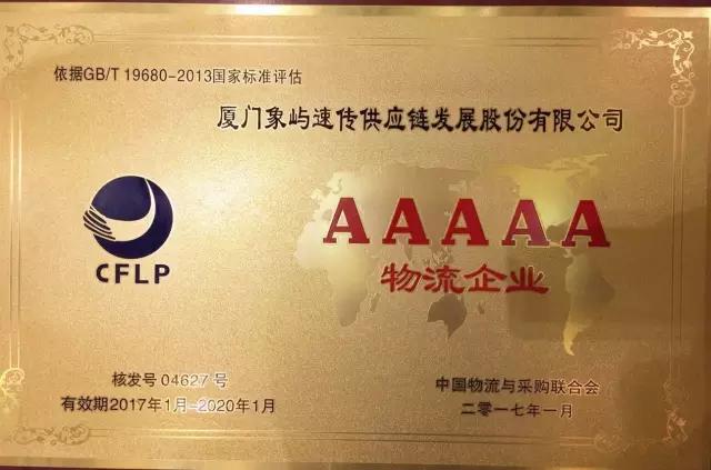 象嶼速傳供應(yīng)鏈榮膺國(guó)家5A級(jí)綜合服務(wù)型物流企業(yè)