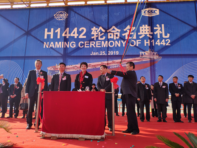 1月25日,揚(yáng)州中遠(yuǎn)海運(yùn)重工有限公司和外高橋造船有限公司聯(lián)合為中遠(yuǎn)海散運(yùn)建造的40萬(wàn)噸礦砂船(VLOC)首制船在上海順利命名交付。象嶼股份黨委委員、象嶼股份副總經(jīng)理肖靜勤代表廈門象嶼股份有限公司參加了命名交船儀式,擔(dān)任新船教母,為新船命名“遠(yuǎn)津海”并剪彩。