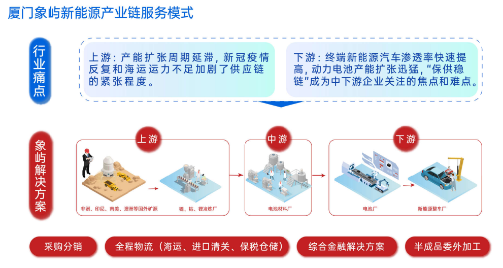在服務(wù)方案中,象嶼股份堅持物貿(mào)聯(lián)動核心競爭力,充分發(fā)揮國際物流基因優(yōu)勢,積極開拓延伸非洲礦山內(nèi)陸物流服務(wù),打通剛果金礦山至國內(nèi)門點的全流程物流。針對客戶需求和痛點,象嶼股份充分整合運力資源,以綜合供應(yīng)鏈解決方案服務(wù)上下游客戶,提高全鏈條多環(huán)節(jié)物流周轉(zhuǎn)效率。
