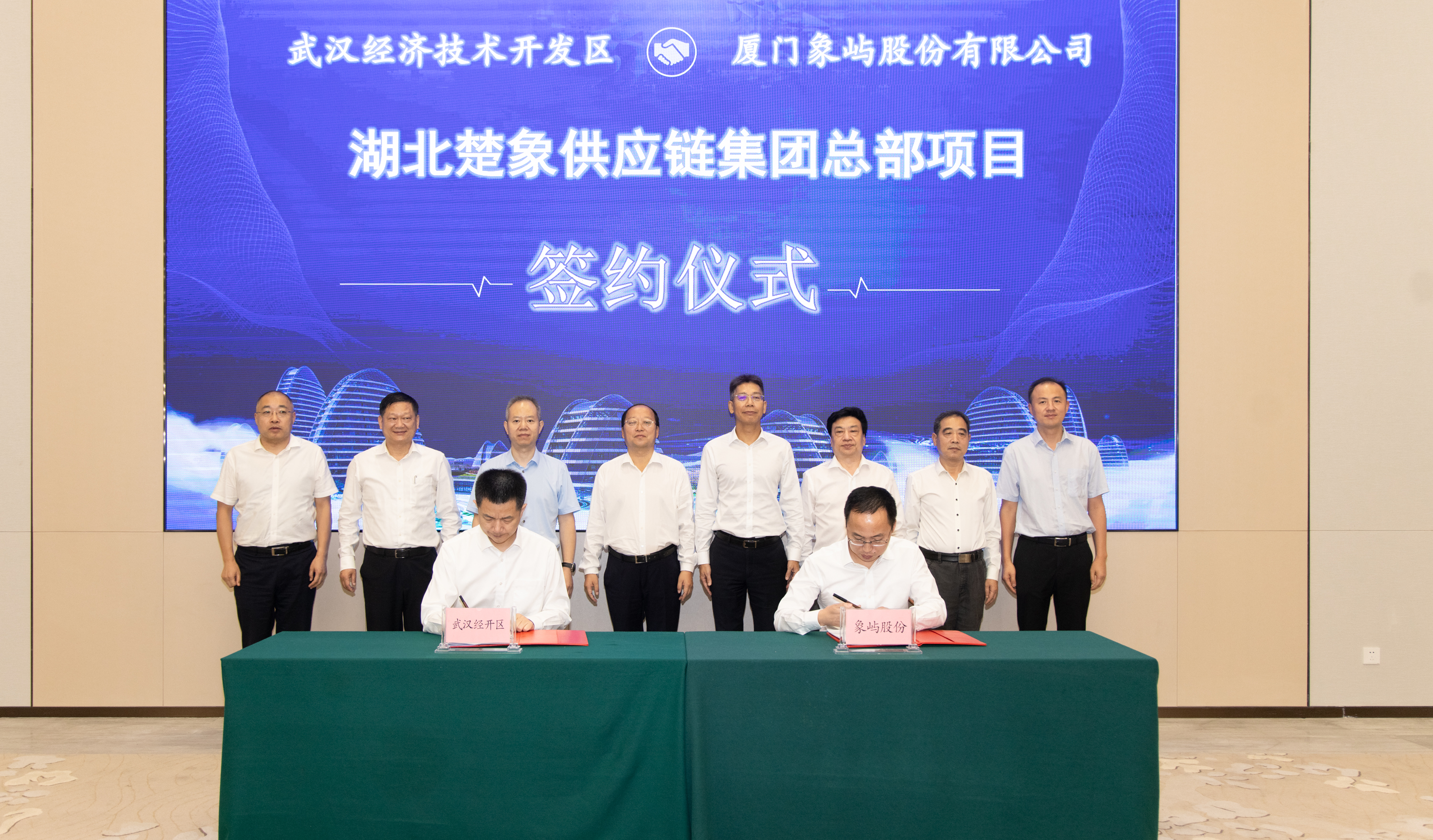 9月28日下午,廈門(mén)象嶼股份有限公司與武漢經(jīng)濟(jì)技術(shù)開(kāi)發(fā)區(qū)簽署項(xiàng)目合作協(xié)議,湖北楚象供應(yīng)鏈集團(tuán)總部項(xiàng)目正式落戶武漢經(jīng)開(kāi)區(qū)。在象嶼股份黨委書(shū)記、總經(jīng)理齊衛(wèi)東,市委常委、武漢經(jīng)開(kāi)區(qū)工委書(shū)記劉子清,湖北交通投資集團(tuán)有限公司黨委書(shū)記、董事長(zhǎng)龍傳華,黨委副書(shū)記、總經(jīng)理盧軍等共同見(jiàn)證下,象嶼股份黨委委員、副總經(jīng)理范承揚(yáng)與武漢經(jīng)開(kāi)區(qū)工委副書(shū)記、管委會(huì)主任唐超分別代表雙方簽約。